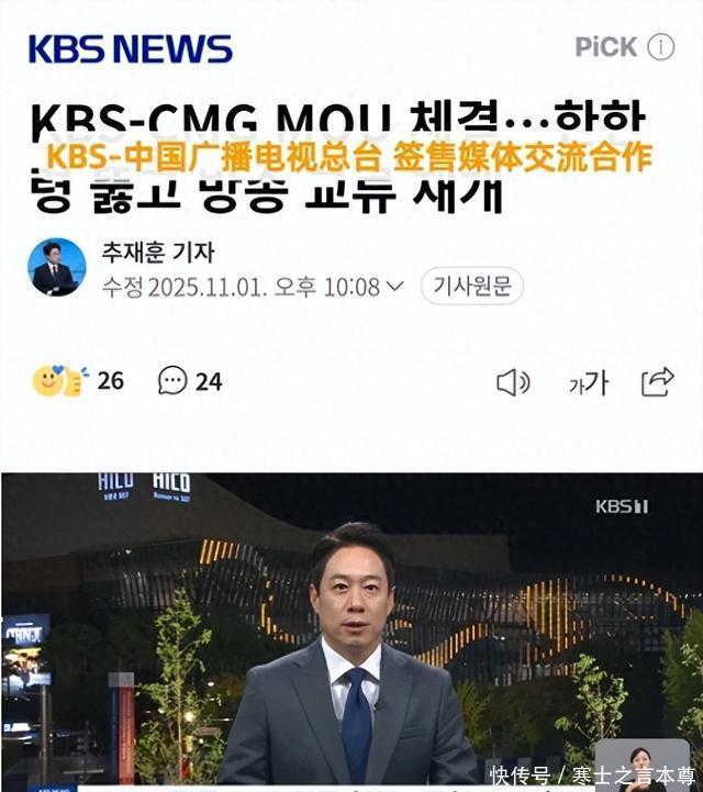 韩国三大电视台之一的KBS与CCTVE央视在内的总台CMG签署了媒体交流合作合约,韩媒对此大肆报道,直言这是重新打开中国市场的信号,甚至就连KBS的社长都极其罕见的下场,他表示此次合作对于打造韩国项目产业重新正式进军中国的突破口来说,意义十足,甚至他还表示旗下的打歌节目《音乐银行》的全球巡演,也将来到中国举办。